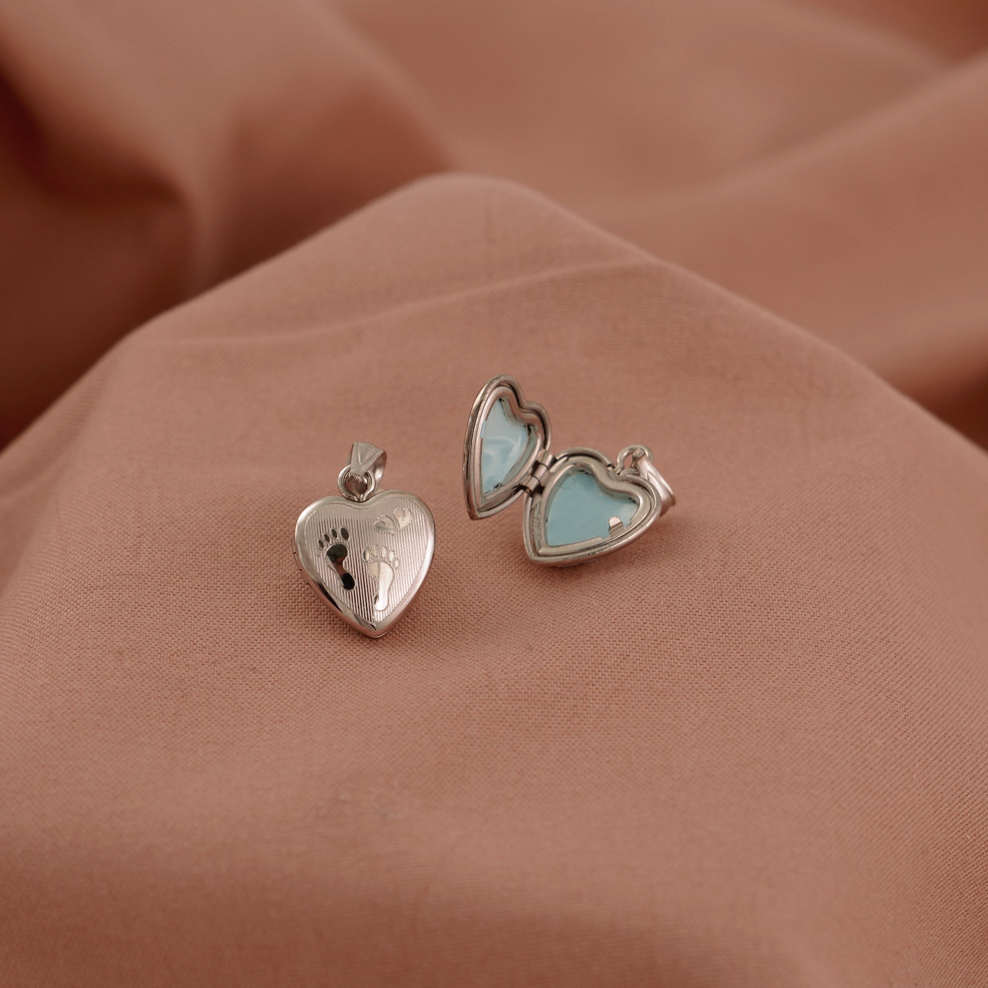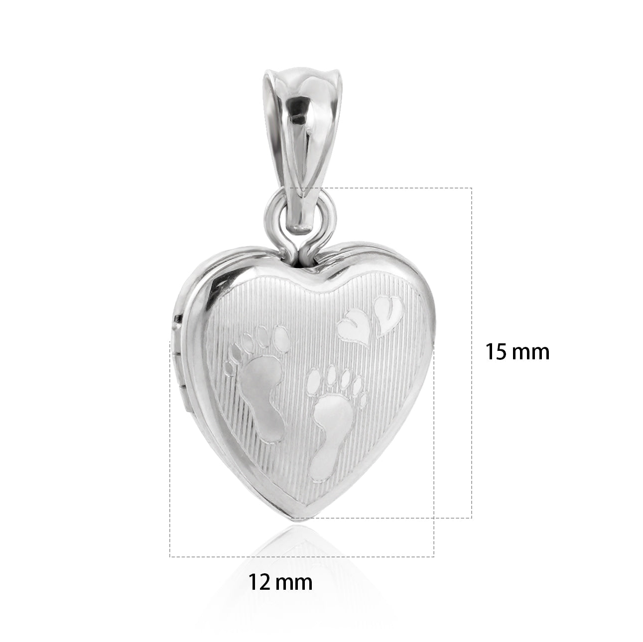 Cute Children Footprint Heart 925 Sterling Silver Locket Necklace Pendant