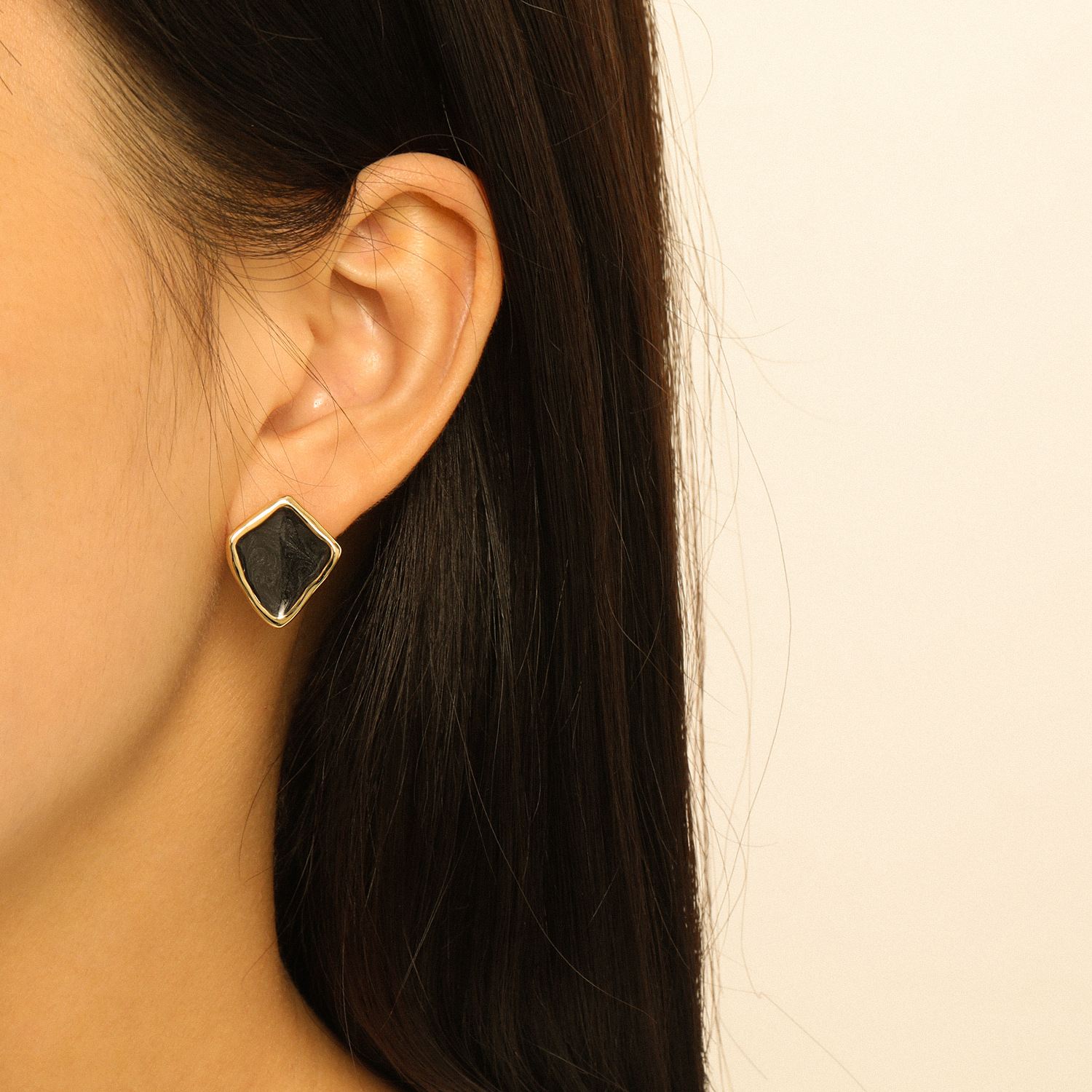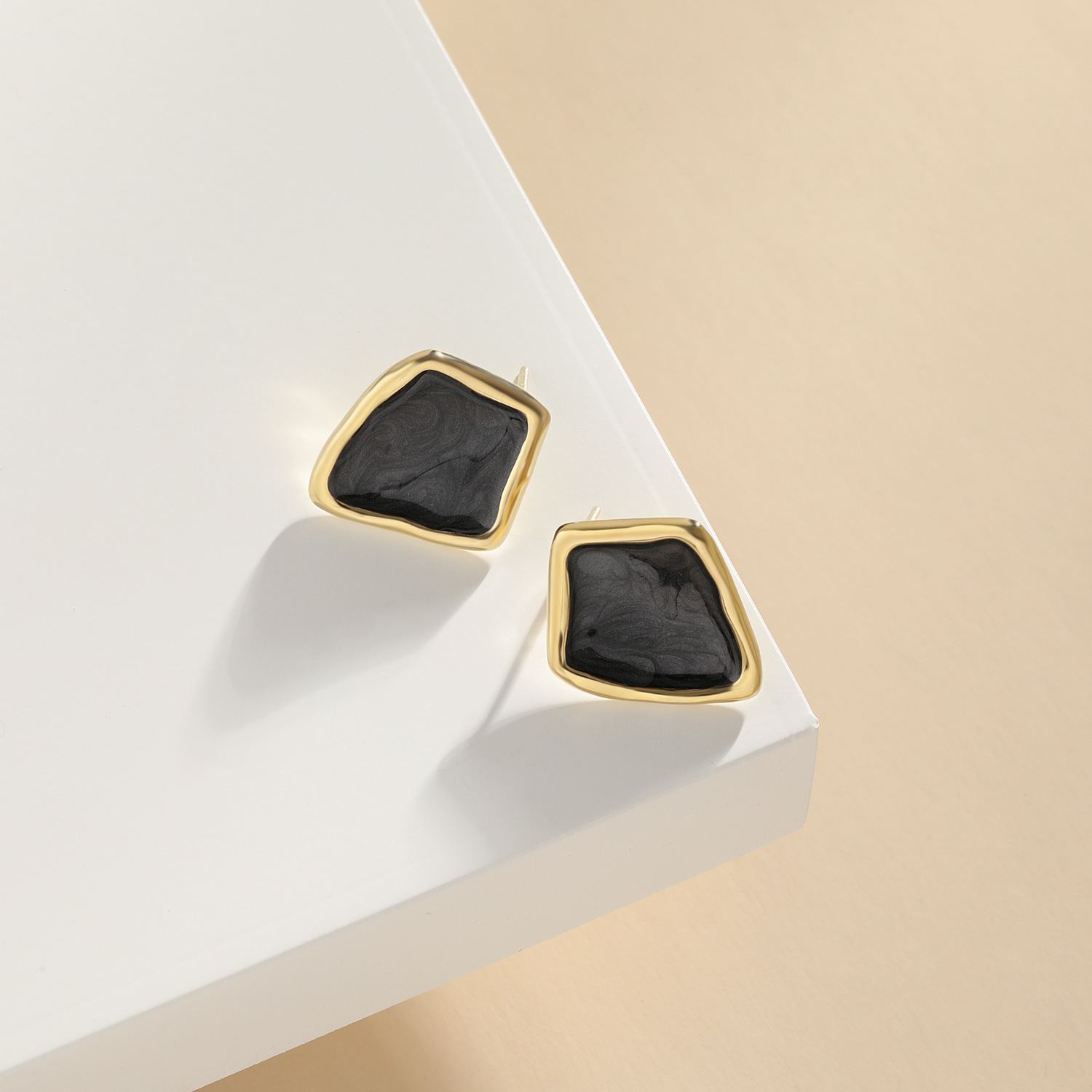 Elegant Irregular Geometry Epoxy 925 Sterling Silver Stud Earrings