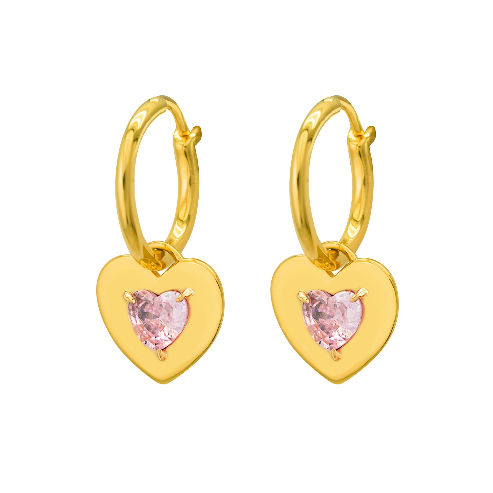 Mindful Two Sides wearing styles Pink CZ Heart Love 925 Sterling Silver Hoop Earrings