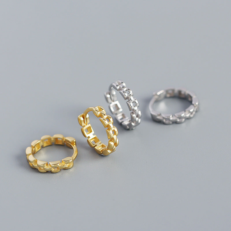 Modern Watchband 925 Sterling Silver Huggie Hoop Earrings