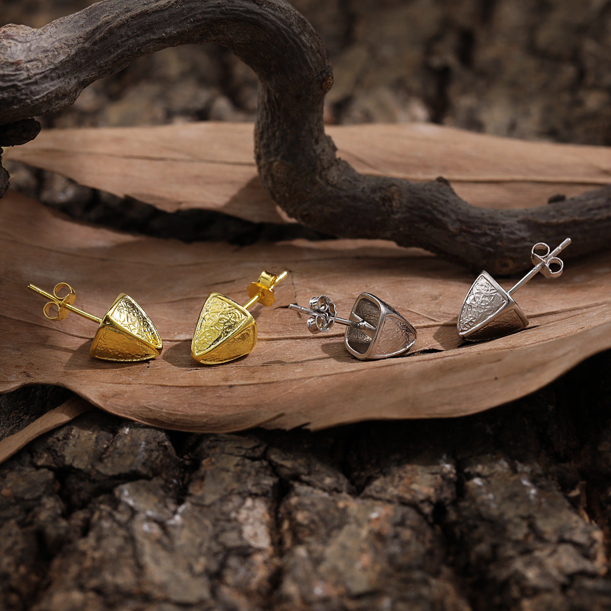Mindful Irregular Triangular Pyramid 925 Sterling Silver Stud Earrings
