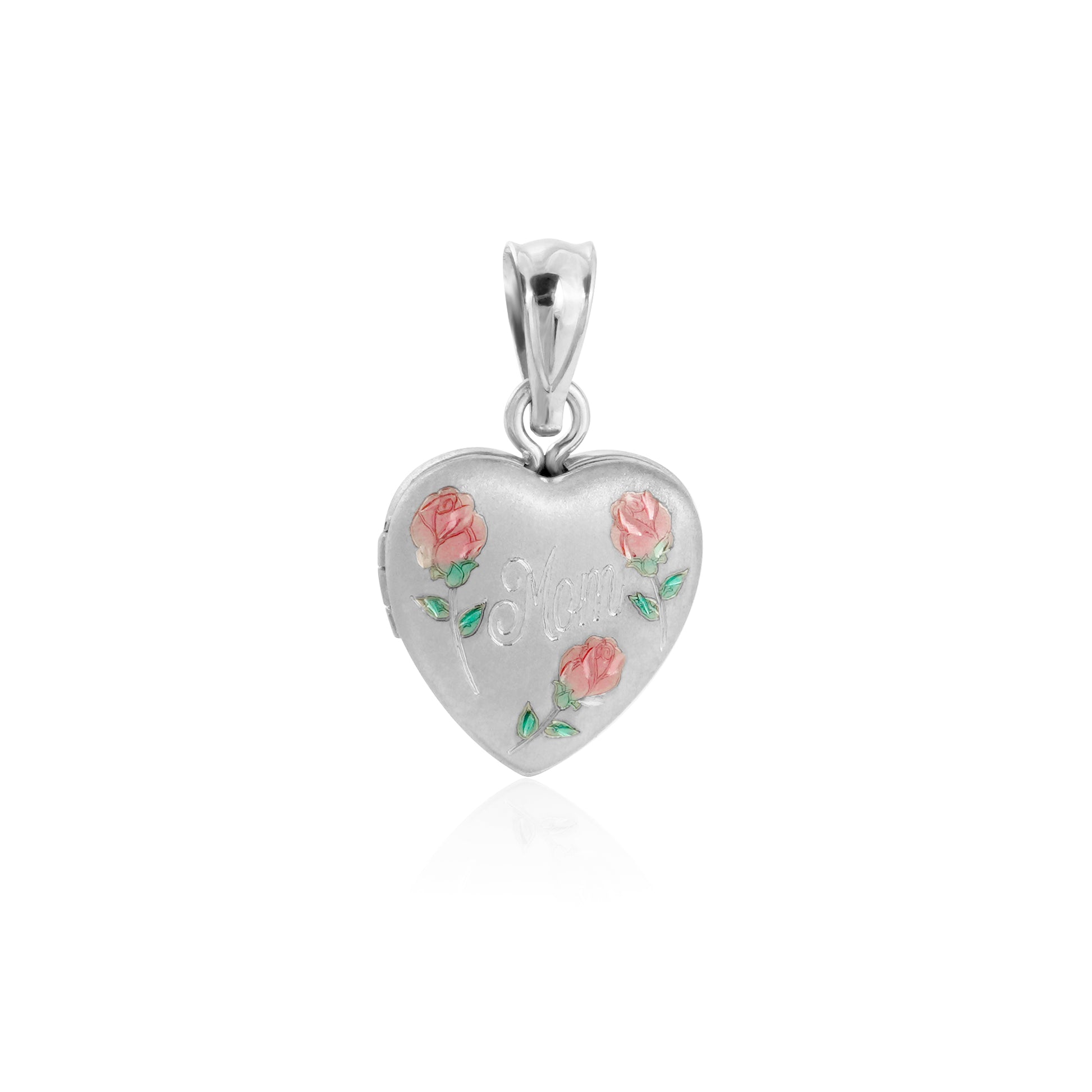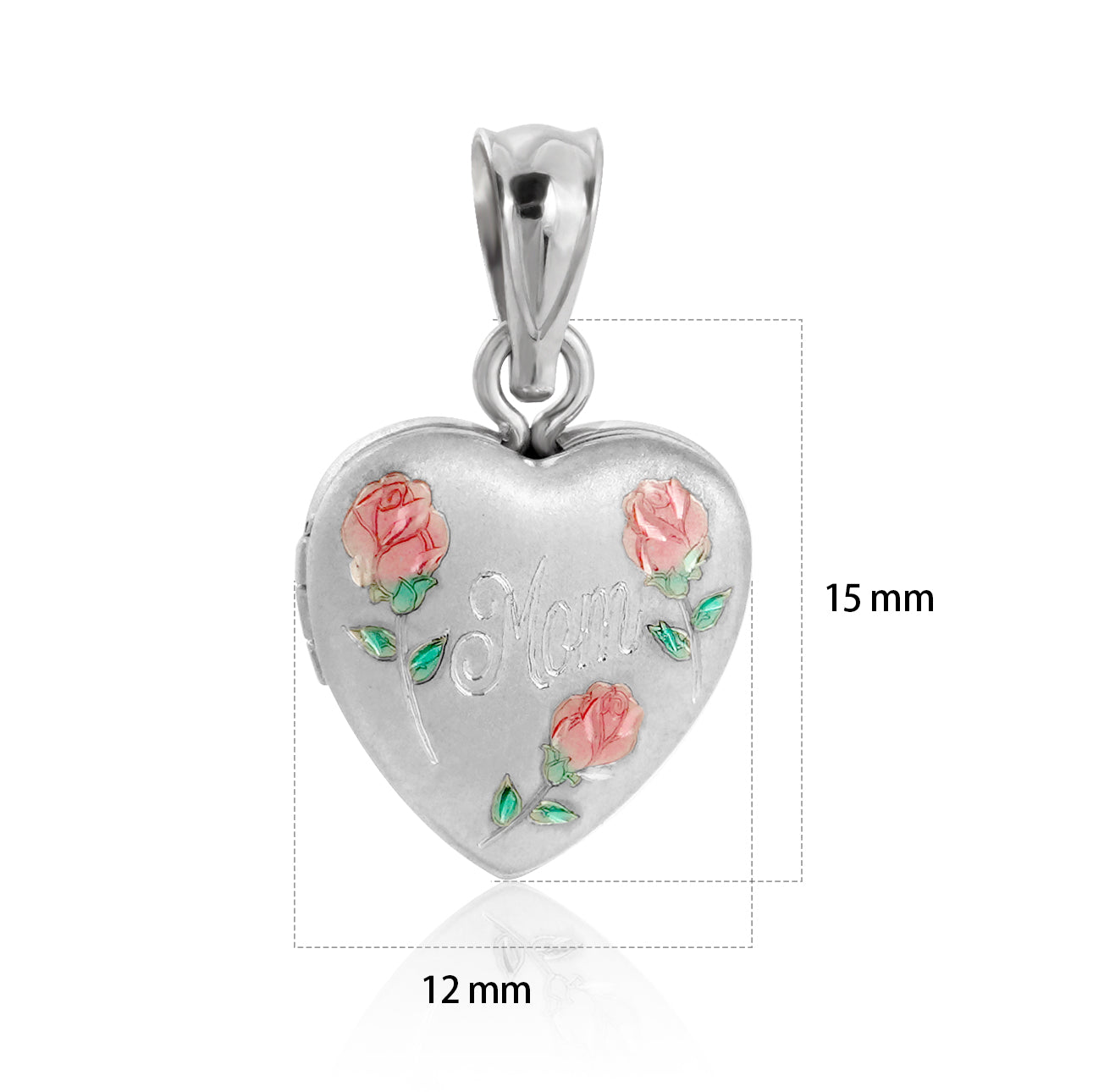 Gift Red Rose Flower Mother's Day Heart 925 Sterling Silver Locket Necklace Pendant