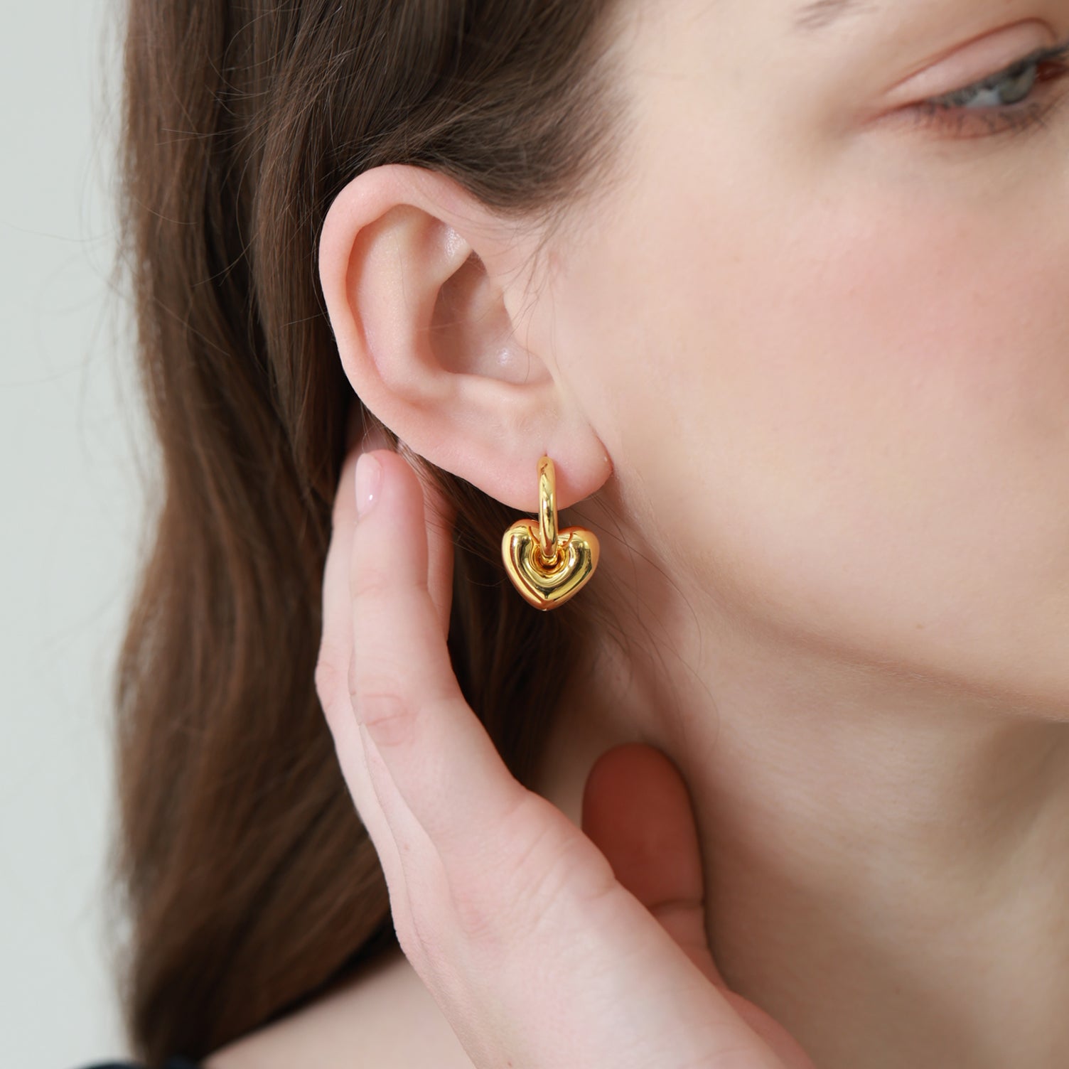 Girl Gift Hollow Love Heart 925 Sterling Silver Electroforming Star Hoop Earrings