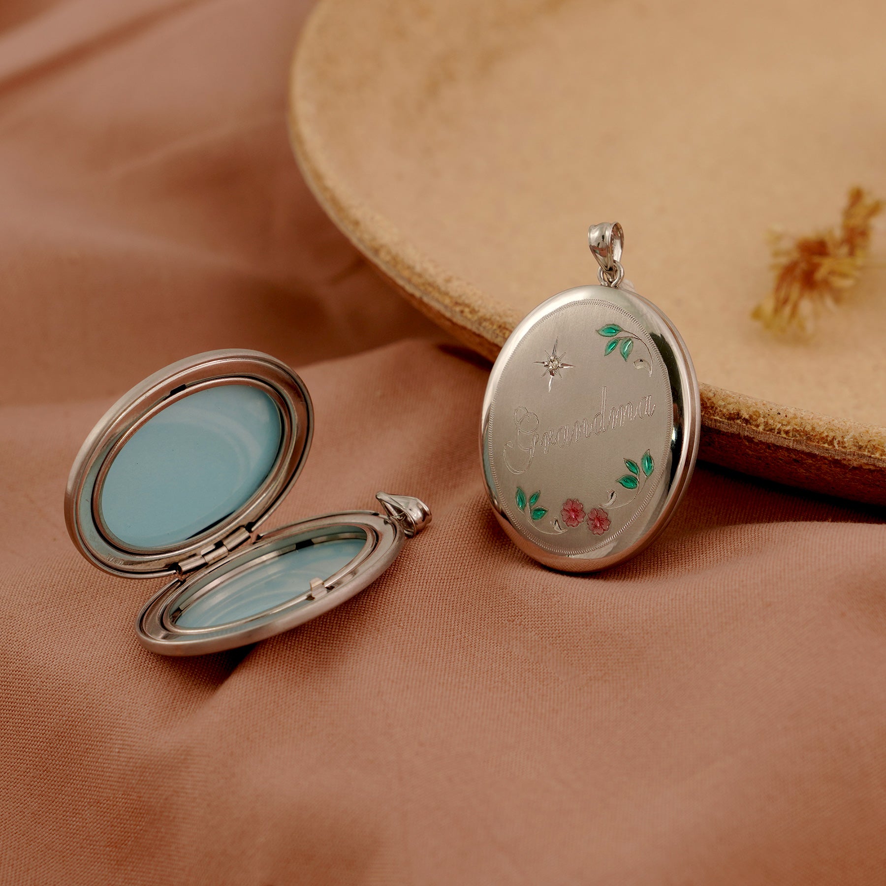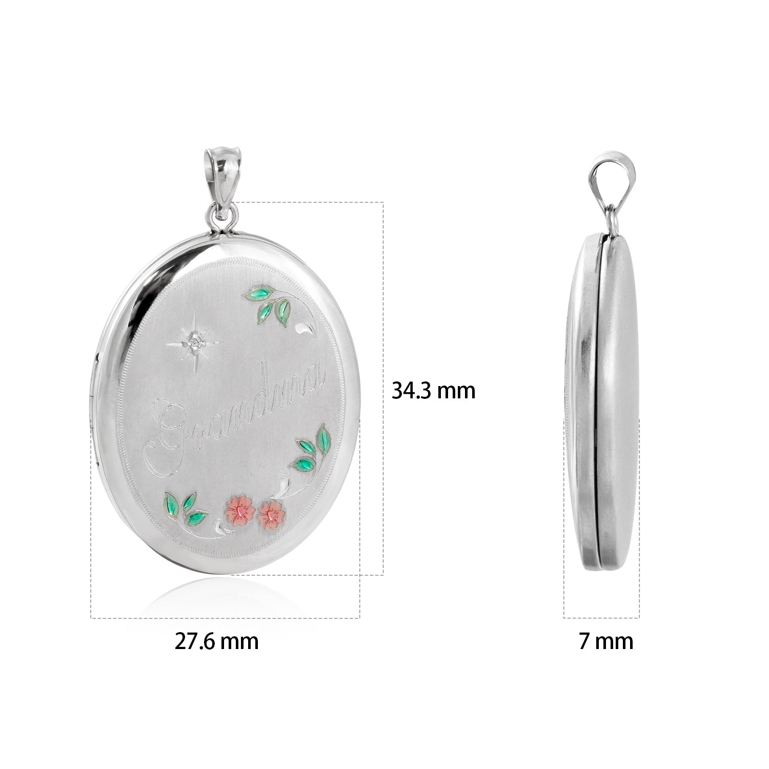Holiday Red Flowers Green Leaves Mother's Day CZ Star 925 Sterling Silver Locket Necklace Pendant