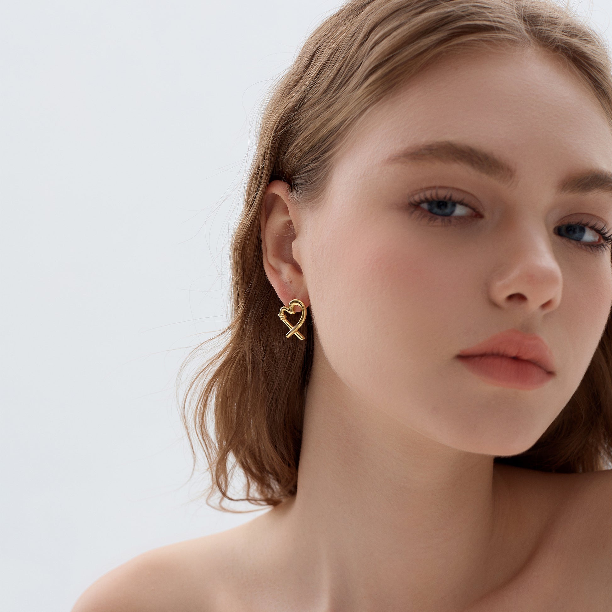 Honey Moon Hollow Heart 999 Sterling Silver Romantic Fine Jewelry Women’s Stud Earrings