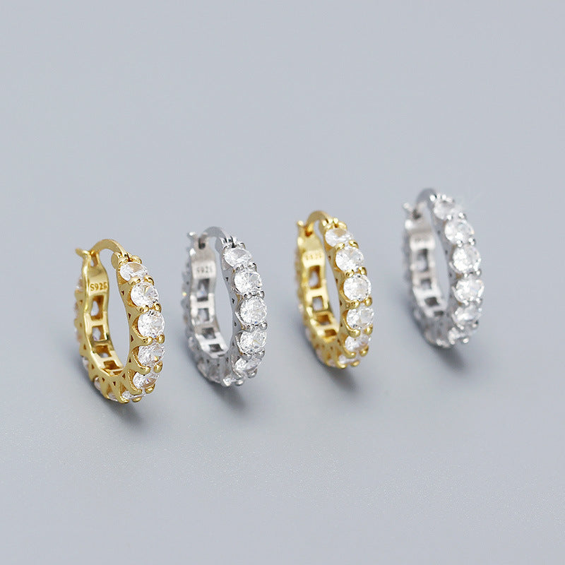 Modern Round CZ Wheels 925 Sterling Silver Hoop Earrings