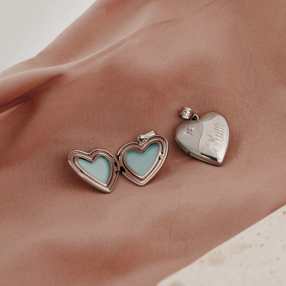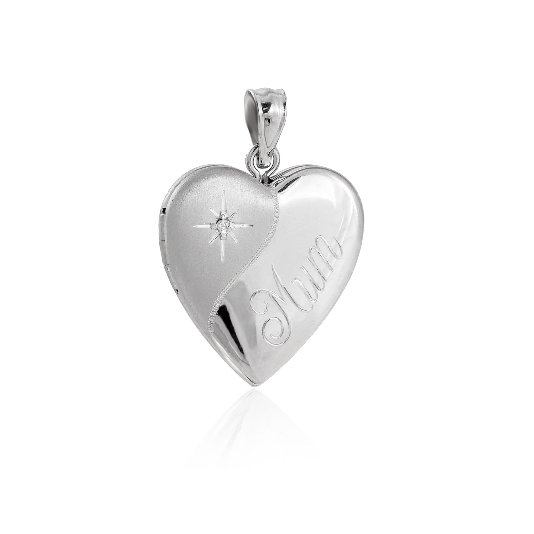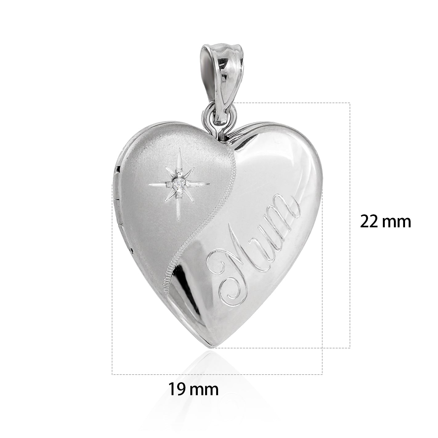 Motner's Day CZ Star Heart 925 Sterling Silver Locket Necklace Pendant