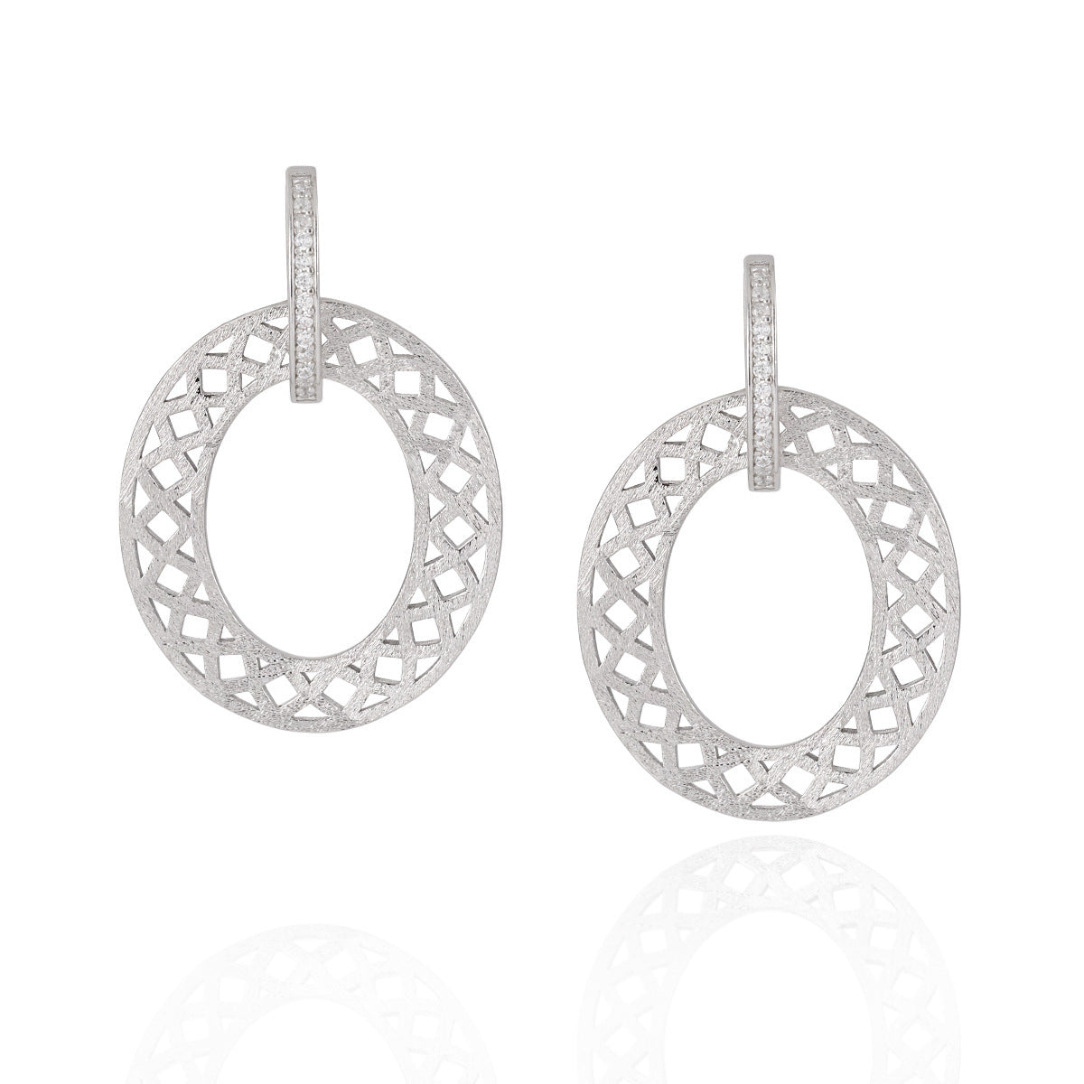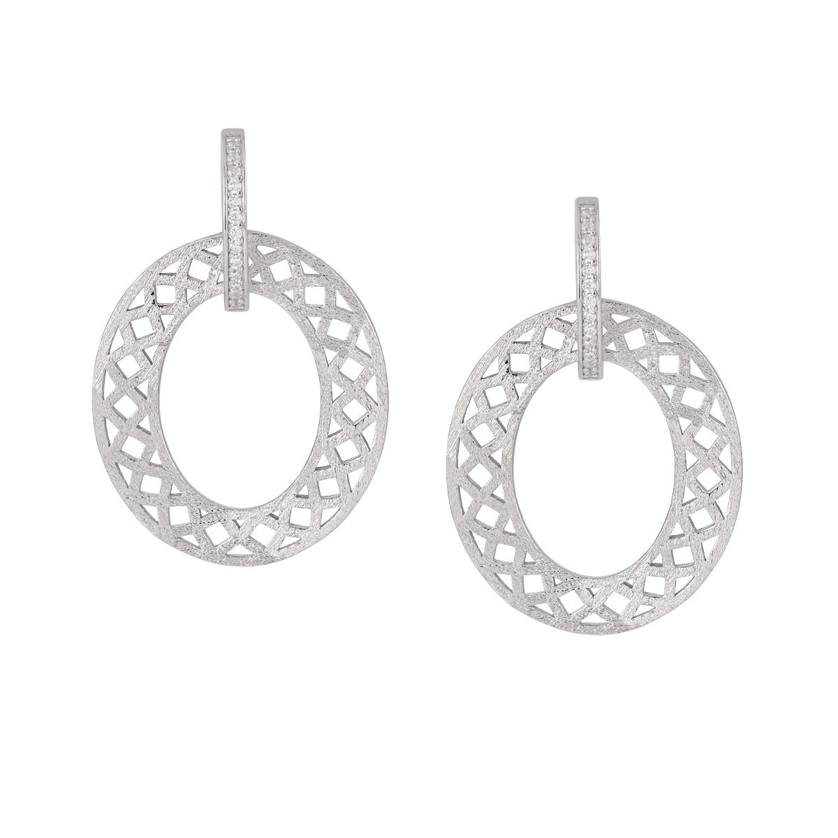Party Geometry Frosted Hollow CZ Circle 925 Sterling Silver Dangling Earrings