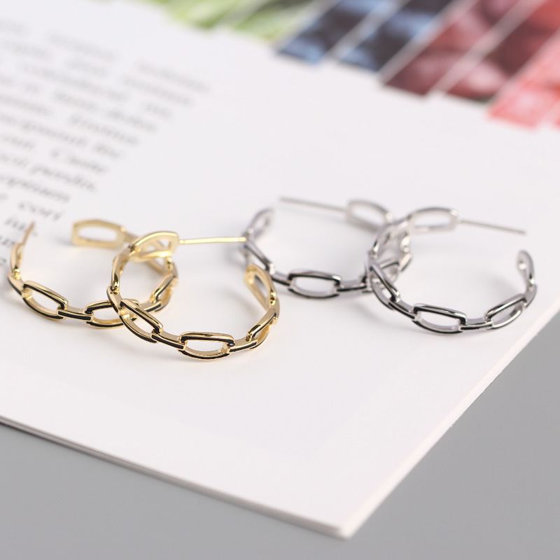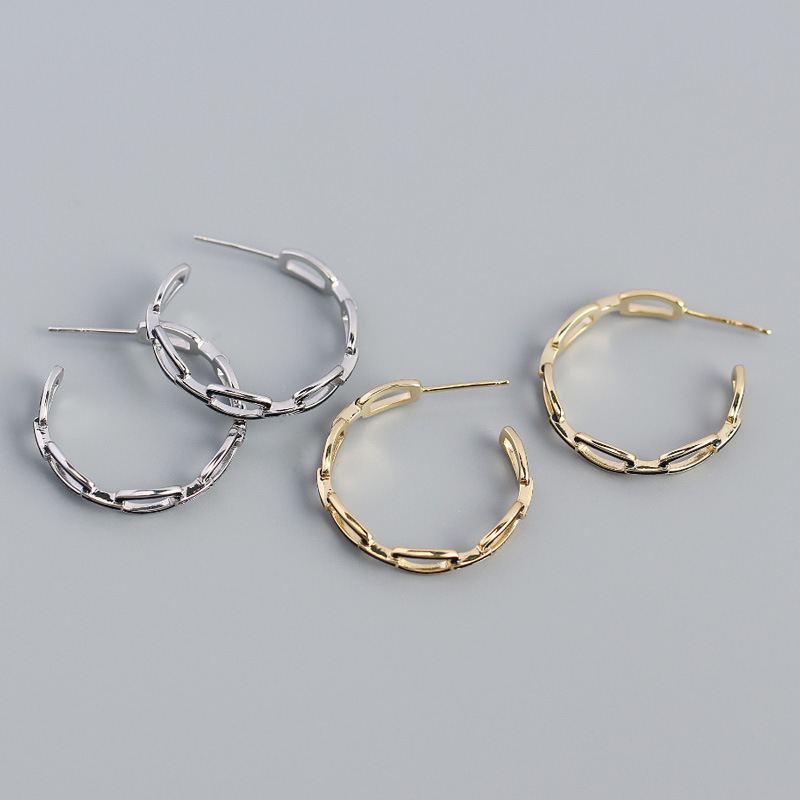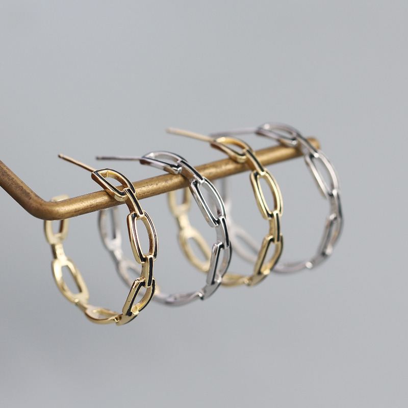 Simple Geometry Hollow Chain C Shape 925 Sterling Silver Hoop Earrings