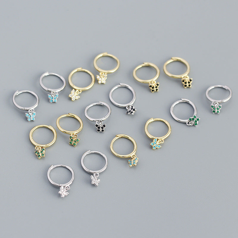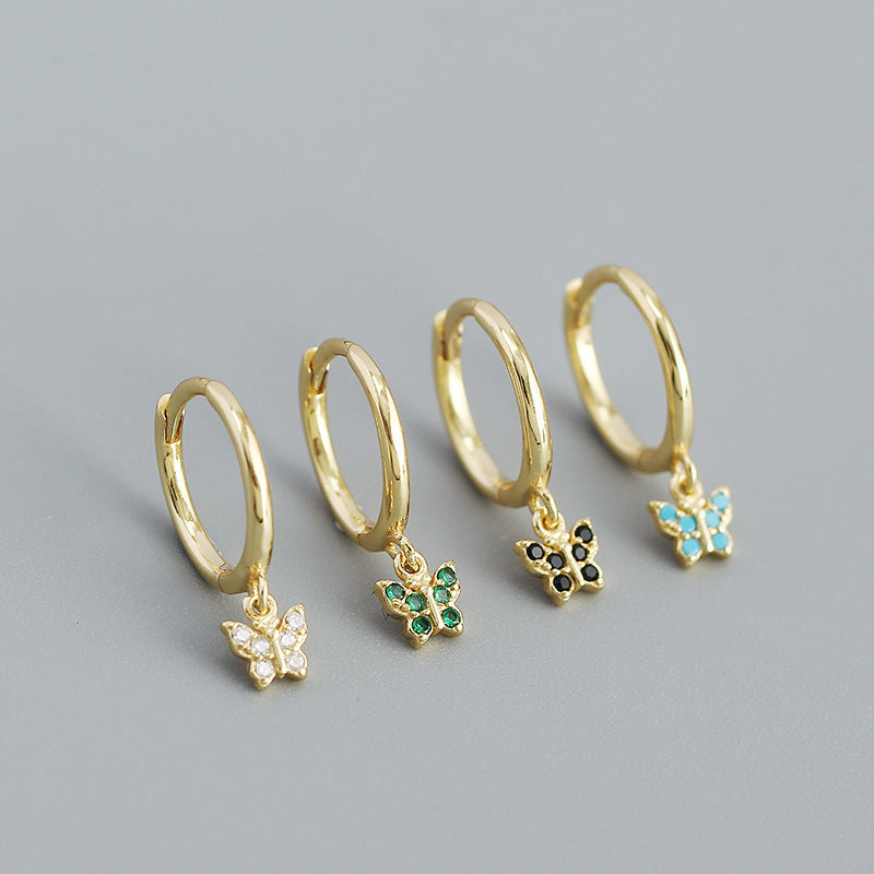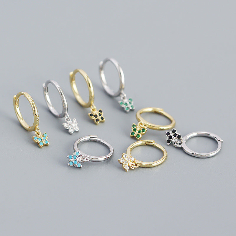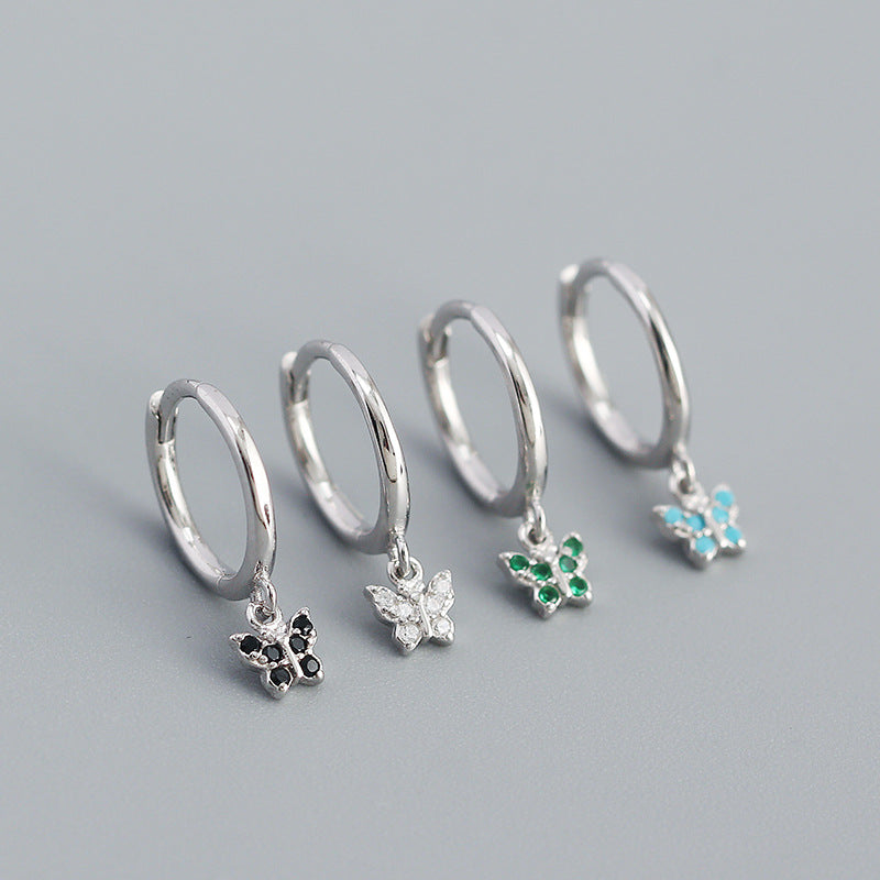 Mindful Mini CZ Flying Butterfly 925 Sterling Silver Hoop Earrings