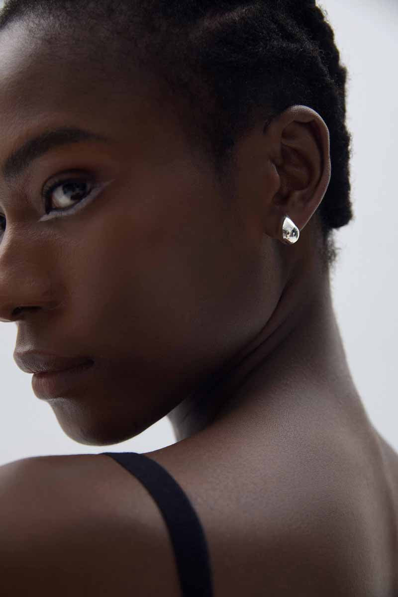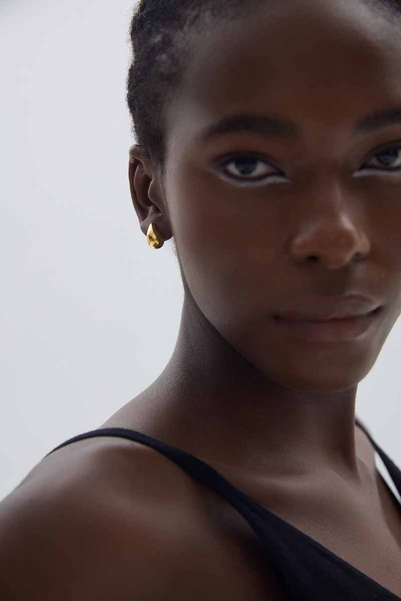 Women Hollow Simple Classic Minimalist Cute Mini Water Drop 18k Gold Plated S999 Sterling Silver Electroforming Stud Earrings