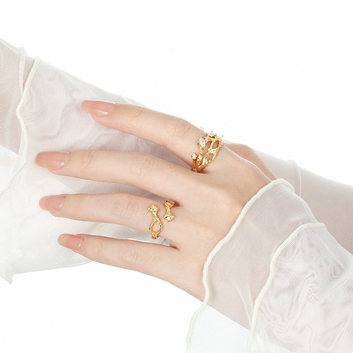 Women Irregular CZ Tree Branch 925 Sterling Silver Adjustable Ring